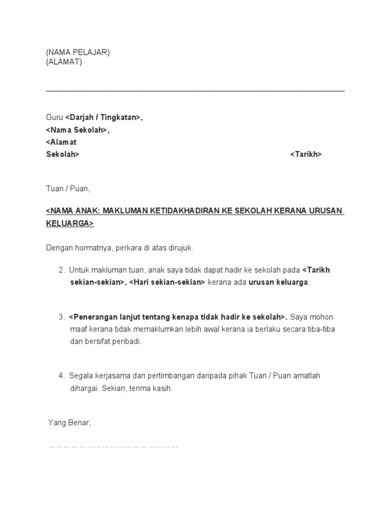 Contoh Surat Tidak Hadir Urusan Keluarga Pdf